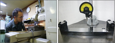 「素材は焼入材の鉄が基本ですが、条件によってはステンレスも可能です。慣れたお仕事では外注さんと連携して研磨加工だけではなく、切削加工からの対応も可能です。高精度な加工を実現するためには、高い加工技術だけではなく、加工したものを精度保障する為の測定具、及び測定技術、これら全てが必要になります。当社では108個のブロックゲージを3セット準備しており、状況に応じて使い分けています。測定具も粉塵やオイルミストなどの影響を受けないように配慮し、温度管理と測定誤差を少なくする為に空気清浄機にもこだわってます。窓ガラスには断熱材を入れて、外気の進入を塞ぎ、20℃に恒温化した工場で製品寸法管理体制を整えています。設備面も大切ですが、意外と技術を必要とされるのが『検査技術』です。誤差が1000分の1単位の加工物ですので、素早く測定をしないと熱膨張し、正確な測定ができなくなってしまいます。そこで、短時間で正確に測る測定技術が必要になるのです」。