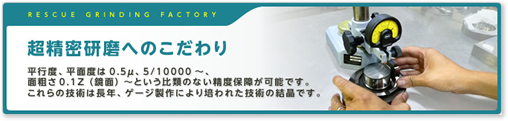 「これをきっかけにHPを立ち上げたり、商談会に積極的に参加したりするようになりました。ミクロン単位の精度が必要な精密部品の研磨や、金型部品の再研磨など精密加工の仕事を始めるようになりました」と語るように、従来の検査具、ゲージに加え、平物を中心に昨今は円筒研磨や鏡面仕上等へ事業拡大している。