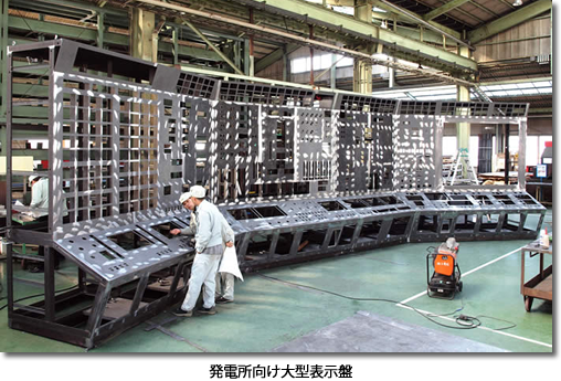 長年の板金・製缶技術による大型の板金・製缶・アングル枠製造に強みを持ち、大型キュービクルを中心として発電所向け大型表示盤・デスク型操作盤や高速道路の情報表示板、大型架台(設備機器などの重量物を設置する台)などを、配電盤の10面列盤連結時(=8,000mm)では、全長を±2mmの精度で製造するのが株式会社マウンテックである。 |