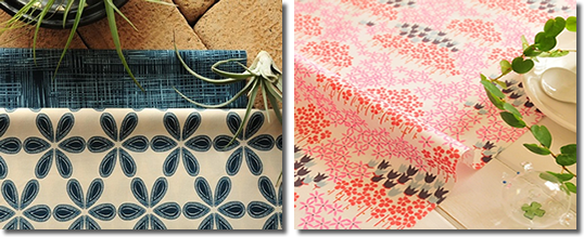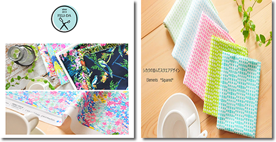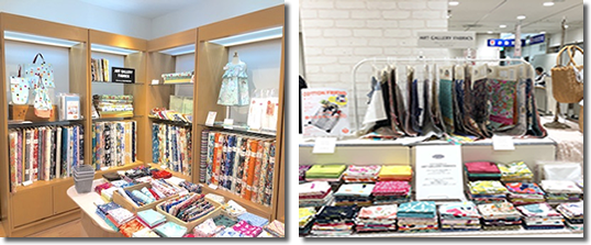 「大手の布地販売店やチェーン店を訪れたのですが、地味な色ばかりで自分が思い描くような明るい色の布は見つかりませんでした。それなら海外からでも気にいるものを買っちゃえ、と探し当てたのがアメリカの布地メーカーART GALLERY FABRICSでした。ひと目で気に入り、個人の趣味として布を買うのではなく、ビジネスとして販売前提で購入すること、ハンドメイド作家などが布を使い作品化し販売化することなどの交渉をし、許可をとりつけました」。 |