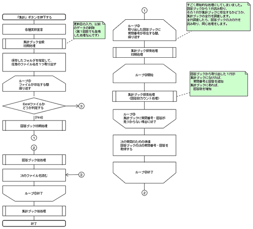 今回は時間がありませんので、流れを先に示してしまいます。大筋のマクロの流れは下図の通りです。プログラムを追うときの参考にしてください。