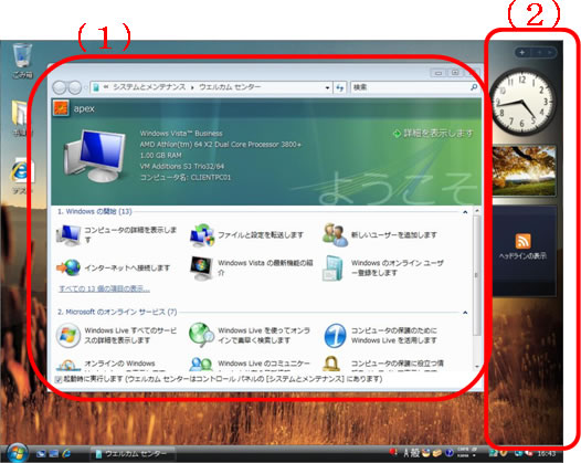 図上(2):Windowsサイドバー、ガジェット