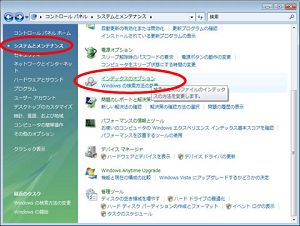 [コントロールパネル]の[システムとメンテナンス]から[インデックスのオプション]を起動します。