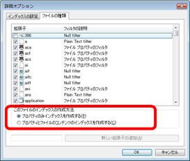 (4)[プロパティのみインデックスを作成する]または[プロパティとファイルのコンテンツのインデックスを作成する] をクリックします。