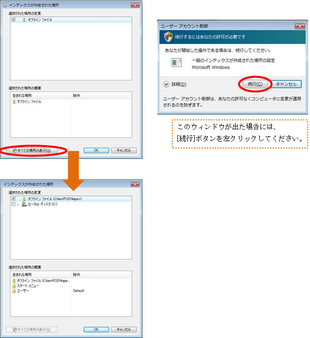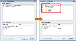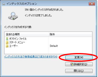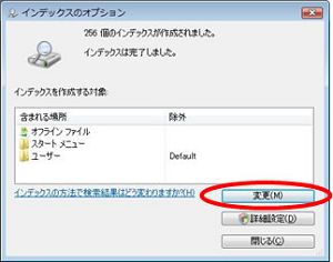 (1)[変更]ボタンを押し、[インデックスが作成された場所]を開きます。