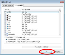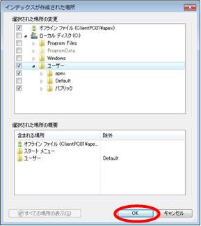 (3)インデックスを作成する場所を選択し終えたら[OK]ボタンを左クリックします。