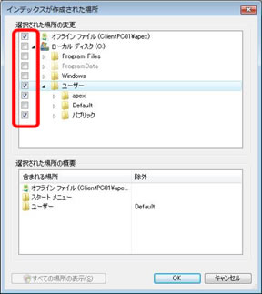 ※除外したい場所がある場合には、その場所のチェックボックスからチェックを外します。