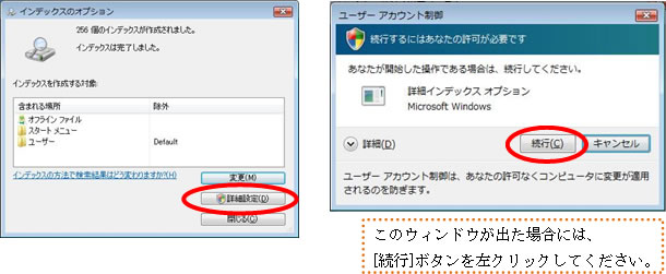 (1)[インデックスのオプション]画面にある[詳細設定]を左クリックします。
