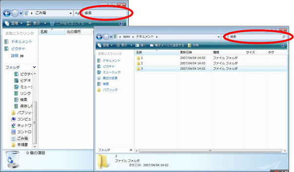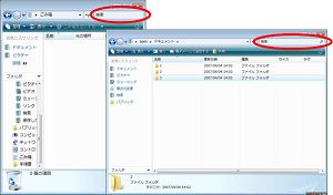 Vistaでは、どのフォルダを開いても右上部に検索ボックスが設置されています。