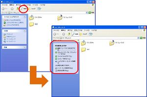 XPでは[スタート]メニューから[検索]フォルダを開くか、各フォルダの上部にある[検索]ボタンを左クリックしないと検索のための画面が表示されません。