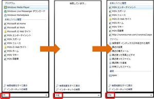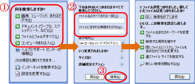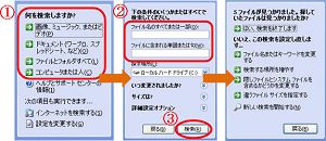 XPでは、1:検索したいものの種類を選択する、2:単語を入力する、3:Enterキーを押すまたは[検索]ボタンを押す と少なくとも3つの手順を踏んでから検索が実行されます。