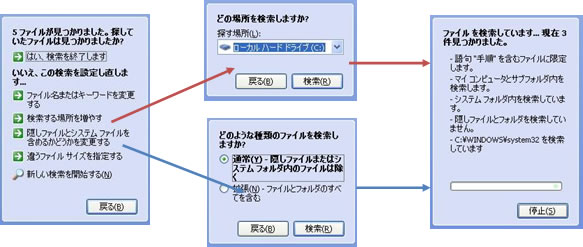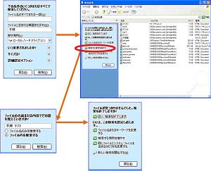 XPは[ファイルに含まれる単語または句]を指定してファイルの内容を検索できます。