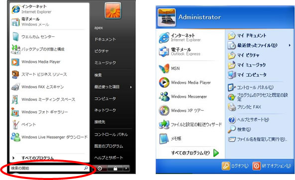 Vistaは[スタート]メニュー上に検索機能がありますが、XPはありません。