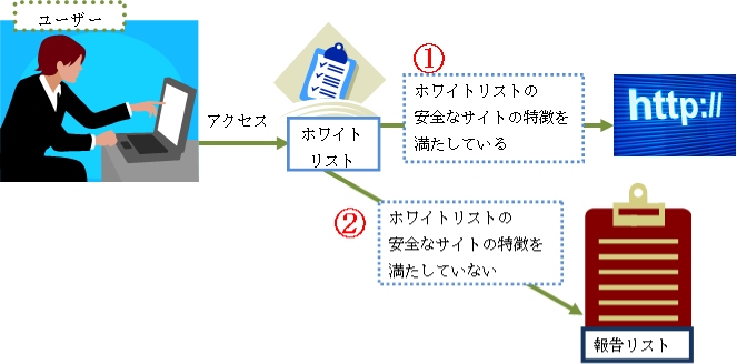 ユーザーがサイトにアクセスする際に、まずこのホワイトリストを参照して安全なサイトか、危険性を含んだサイトか判断します。