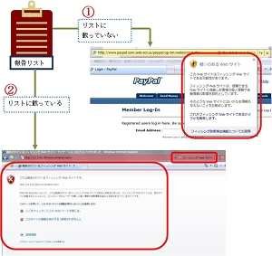 Internet Explorer 7.0のフィッシングフィルタ機能は二つのリストを持っています。