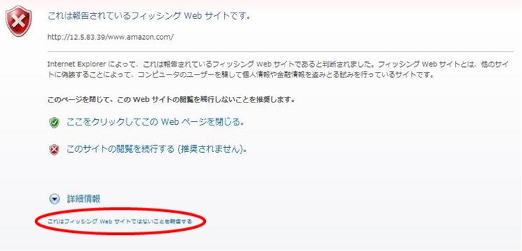 (1)ブロックした時に表示される画面の一番下に[これはフィッシングWebサイトではないことを報告する]というリンクをクリックします。