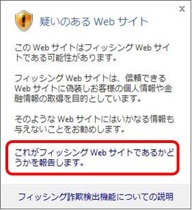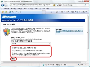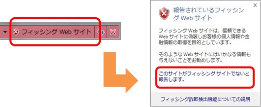 フィードバックをする場合は、[これがフィッシングWebサイトであるかどうかを報告します]リンクを左クリックします。