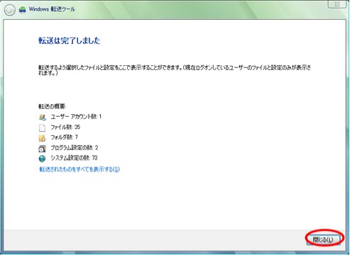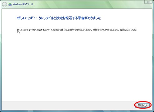 (10)この画面が表示されたら、【閉じる】をクリックし、新しいWindows Vistaパソコンでの操作に戻ります。