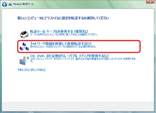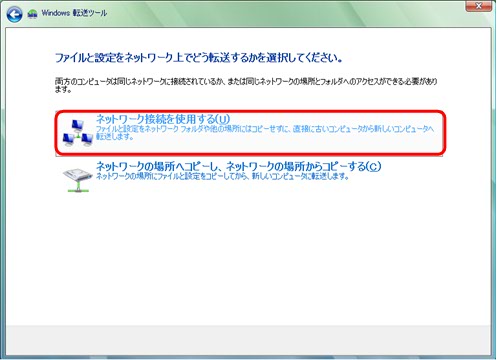 今回は、【ネットワーク接続を使用して直接転送する】をクリックします。