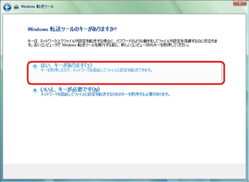 (5)【はい、キーがあります】をクリックします。