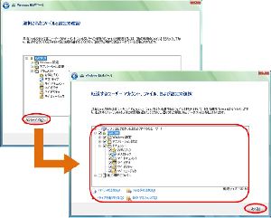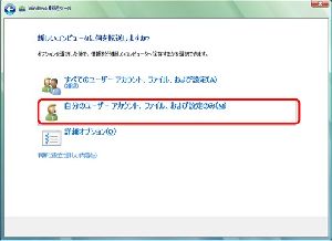 もしログインしたユーザーと異なるユーザー情報を転送したい場合は、【すべてのユーザーアカウント、ファイル、および設定】をクリックし、任意のユーザーを選択します。