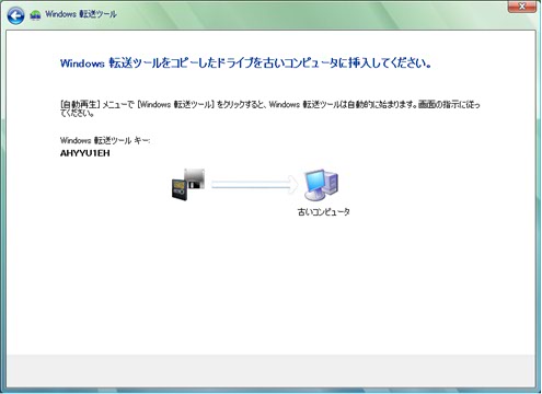 (13)この画面が表示されたら、作業は現在お使いのパソコン(古いパソコン)に移ります。この画面のまま、次のステップを行なってください。