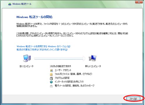 (2)Windows 転送ツールが開始されます。【次へ】をクリックしてください。