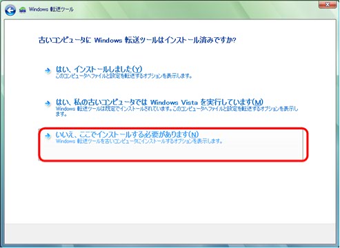 (7)現在お使いのコンピュータにWindows転送ツールをインストールする方法を選択します。