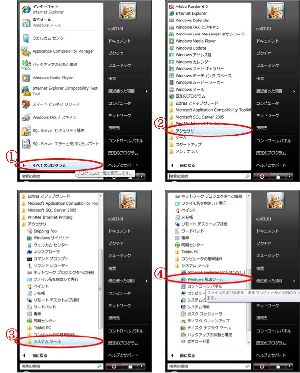 (1)@【すべてのプログラム】→A【アクセサリ】→B【システムツール】→C【Windows転送ツール】を起動します。