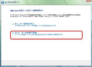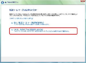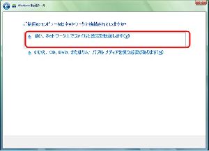 もし、現在お使いのパソコンとWindows Vistaパソコンがネットワークで接続されていない場合は、【いいえ、CD、DVD、またはリムーバブルメディアを使う必要があります】をクリックします。