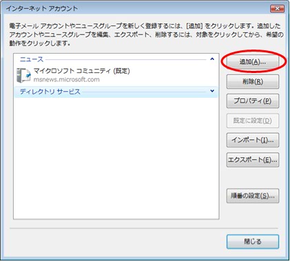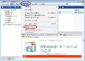 (2)Windows Mailを起動した後、ツールバー内の【ツール】から【アカウント】をクリックします。