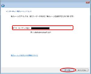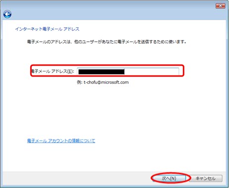 (6)この画面が表示されたら【電子メールアドレス】欄にメールアドレスを入力して【次へ】をクリックしてください。