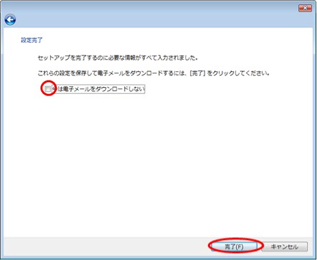 【今は電子メールをダウンロードしない】のチェックは任意で入れてください。