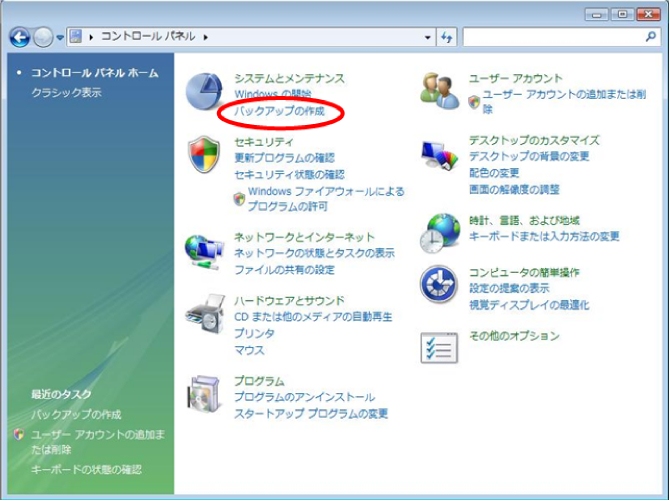 Windows Vistaでは[バックアップと復元センター]がバックアップと復元に関する作業を一元管理しています。
