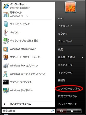 (2)[スタートメニュー]画面の[コントロールパネル]を左クリックします。