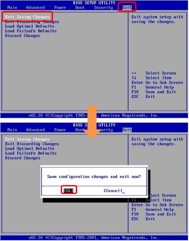 [Exit]タブの[Exit Saving Changes]を選択します。