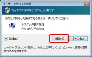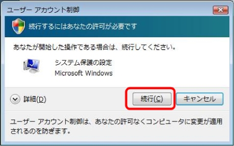 (3)[ユーザーアカウント制御]画面の[続行] ボタンを左クリックします。