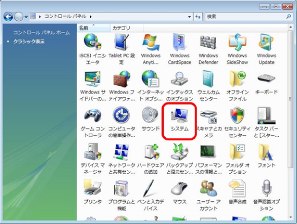[コントロールパネル]をクラシック表示にしている場合、[システム]のアイコンをダブルクリックします。