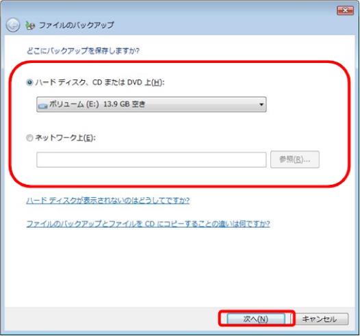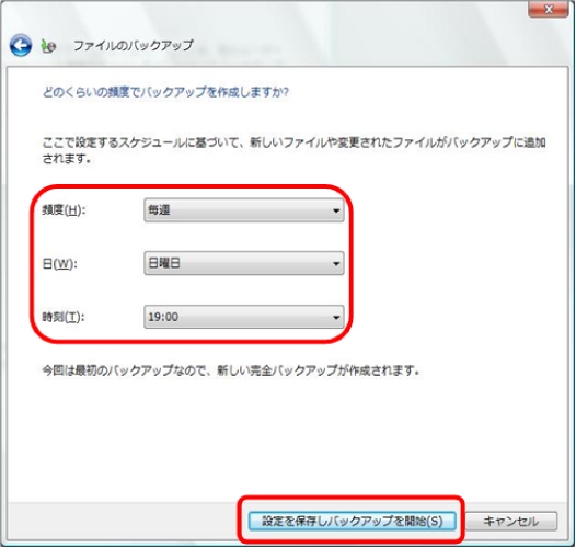 以下の手順は初回バックアップ時のものです。