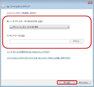 <3>バックアップファイルを保存する場所を選択します。