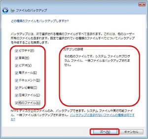 <4>バックアップしたいファイルの種類を選択します。