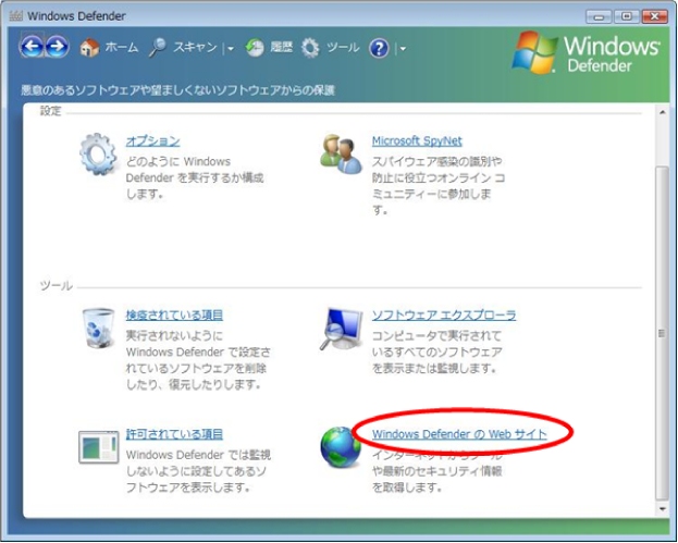 [ツールと設定]画面の[Windows DefenderのWebサイト]を左クリックします。