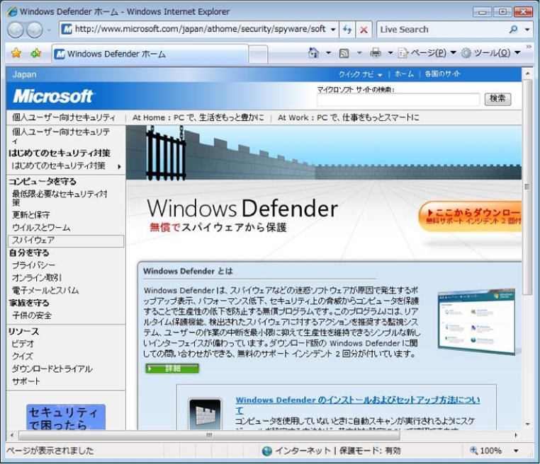 ブラウザが立ち上がり、[Windows Defender]の公式サイトが表示されます。