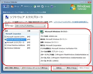 左の欄にインストールされ、実行しているソフトウェアの一覧が表示され、右の欄に詳細が表示されます。