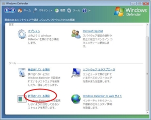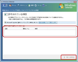 [Windows Defender]の検疫から除外し、動作を許可されているソフトウェアの一覧が表示されます。