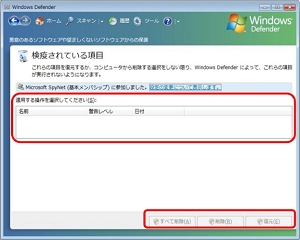 [Windows Defender]によって検疫され、実行されないように設定されているソフトウェアの一覧が表示されます。