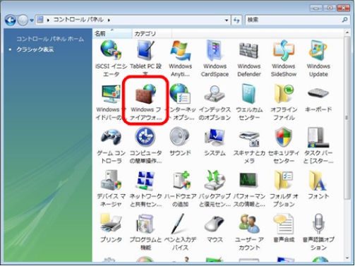 クラシック表示の場合は[Windowsファイアウォール]をダブルクリックします。