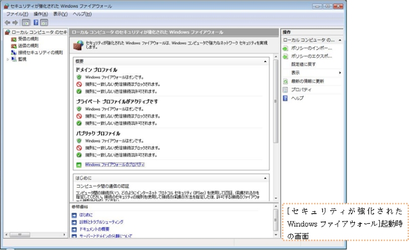以下は[セキュリティが強化されたWindowsファイアウォール]の画面になります。