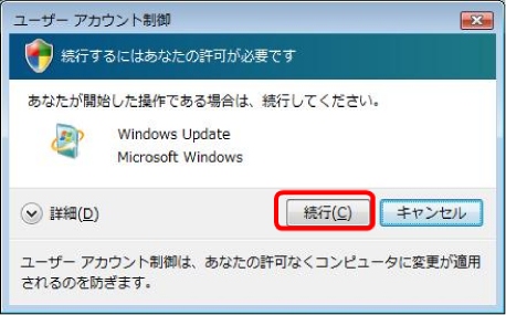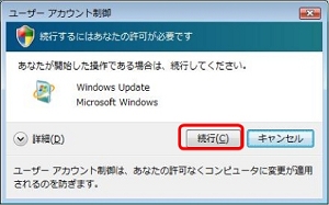 <3>[ユーザーアカウント制御]が表示されるので、[続行]ボタンを左クリックします。