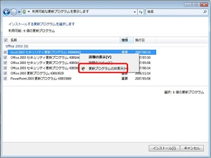 <2>表示された更新プログラムの中で、[非表示の更新プログラム]にしたい更新プログラムの上で右クリックします。